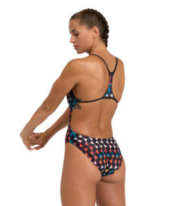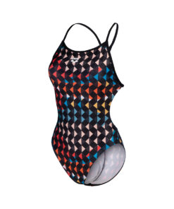 Esplora la magia del carnevale con il nostro costume da donna a stampa Arlecchino! Il design colorato cattura l’essenza festosa del carnevale, mentre la silhouette femminile con sgambatura alta e schiena scoperta ti dona un look elegante in acqua. Affronta le tue sessioni di nuoto con libertà di movimento grazie a questo costume intero, ideale per l’allenamento frequente. Il tessuto MaxLife Eco, resistente al cloro e sostenibile al 100%, mantiene la forma e offre protezione UV 50+. Garantisci una copertura extra grazie alla fodera frontale.