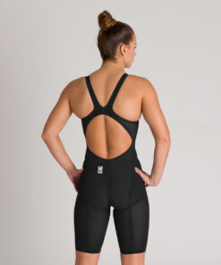 La vestibilità posteriore aperta assicura massima libertà di movimento, permettendo al nuotatore di eseguire ogni bracciata senza alcuna restrizione. Questo design, unito alle cuciture termosaldate, migliora il comfort generale e offre una sensazione di leggerezza simile a una seconda pelle.