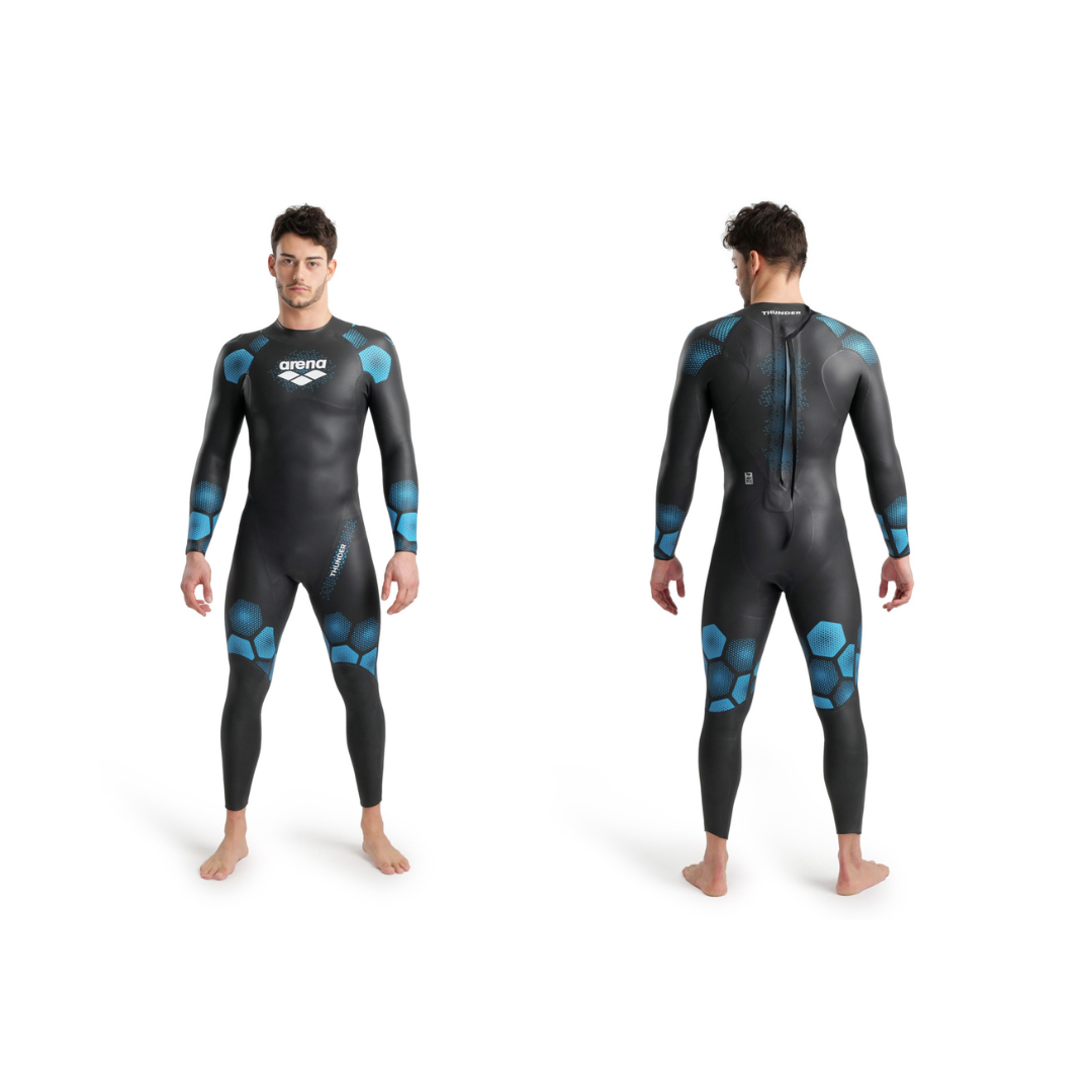 La muta da uomo Arena Powerskin Thunder è ottima per nuotatori principianti e soddisfa le esigenze di gara.